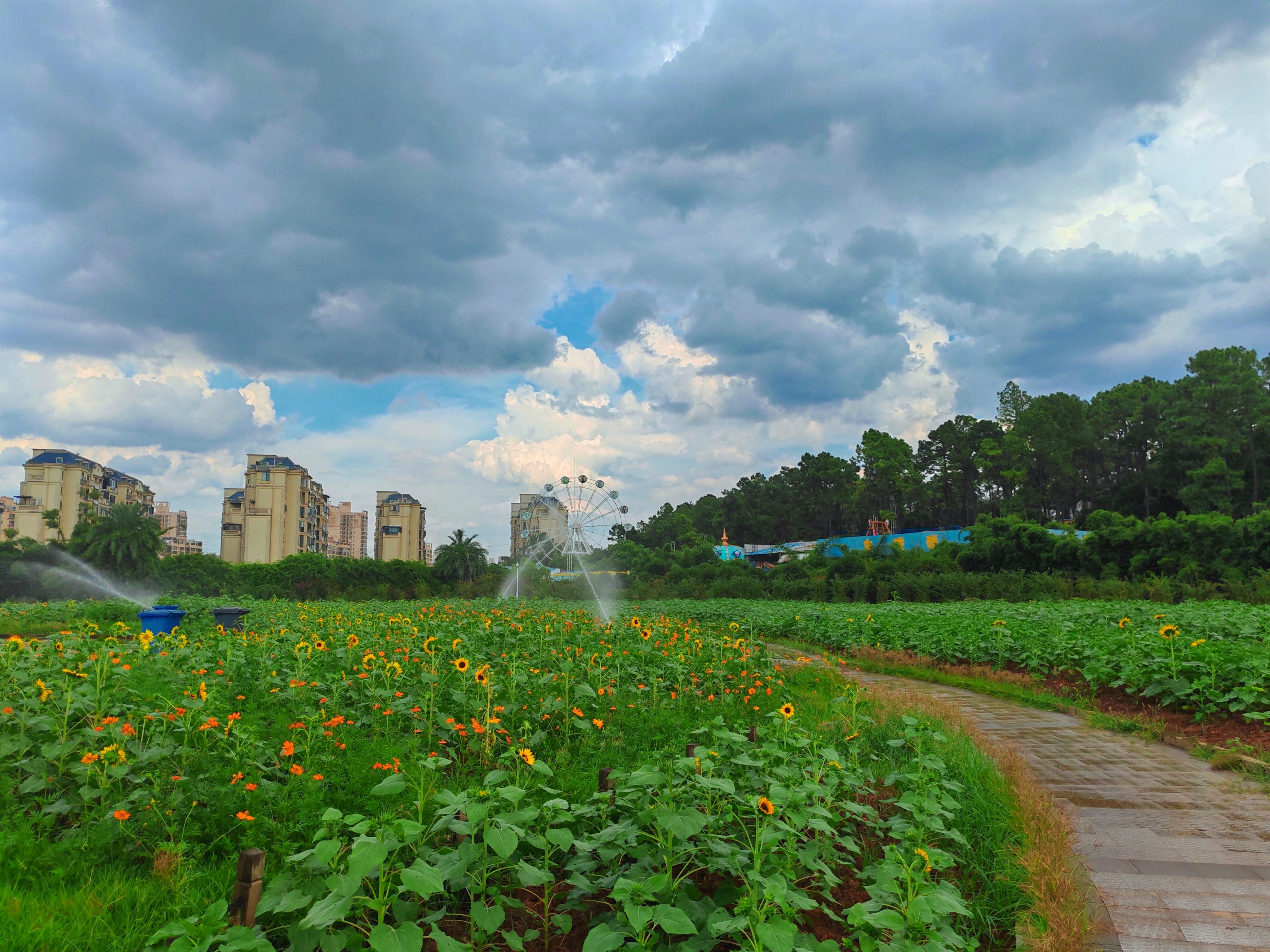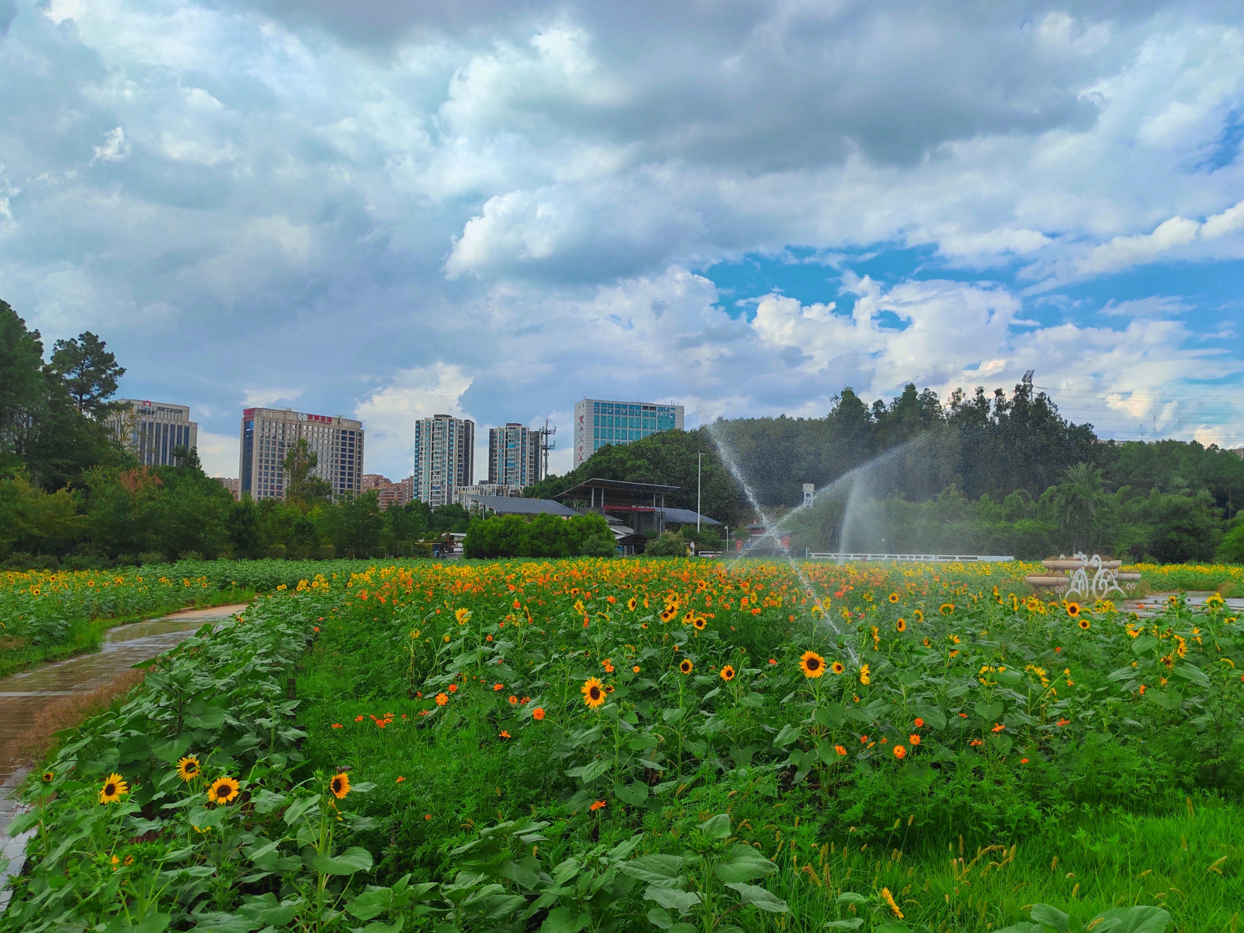 1. "广阔无垠":向日葵花海通常占地面积很大,一眼望去,仿佛无边无际,给人一种心旷神怡的感觉。