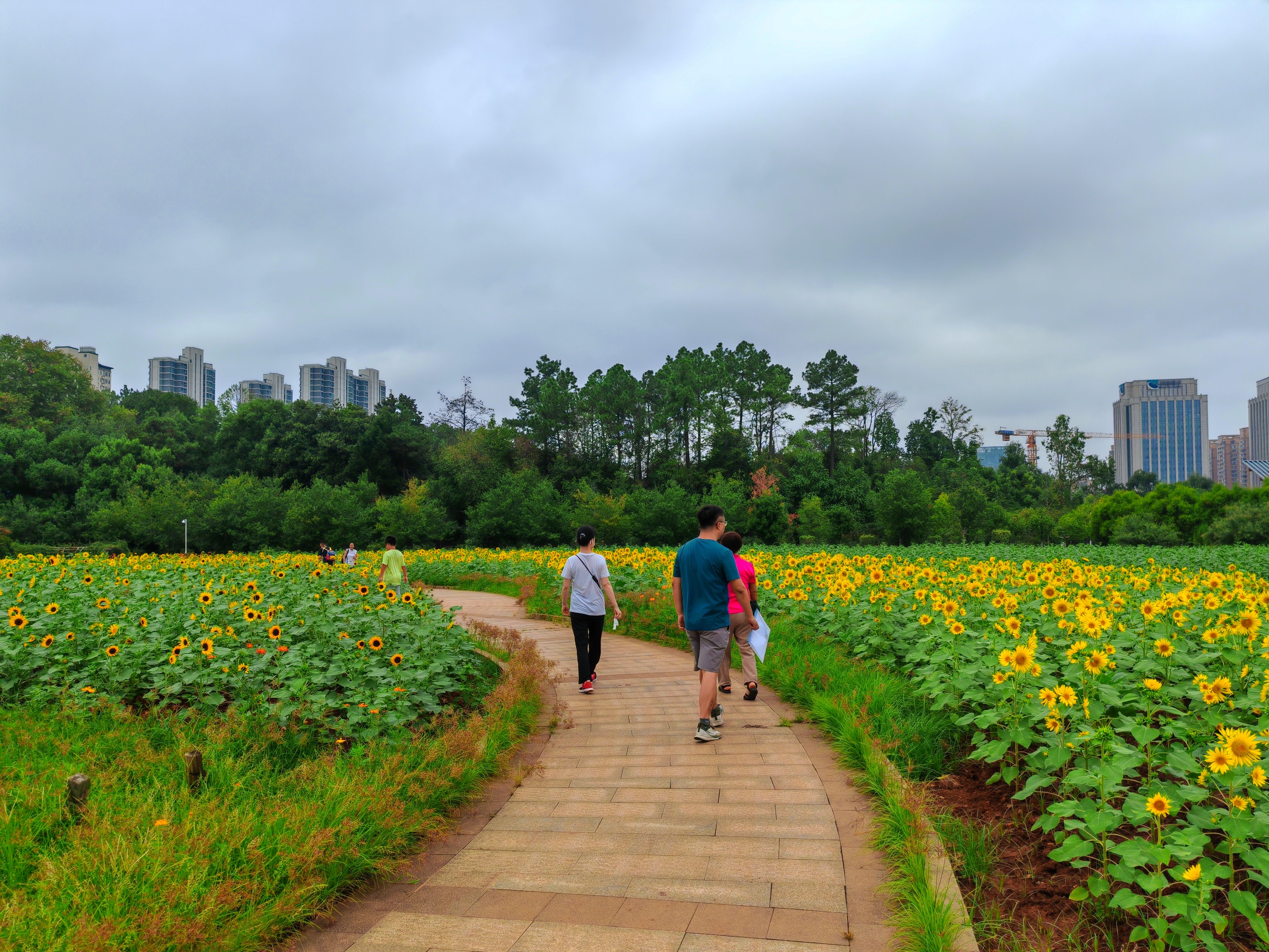 4. "花海漫游":在向日葵花海中漫步,可以感受到微风拂过,带来阵阵花香,让人陶醉。