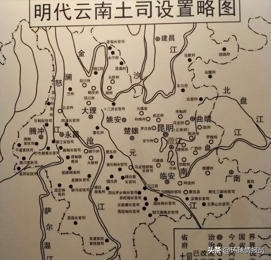 明朝设云南省,治所依旧设在昆明。中央王朝以昆明位置点,开始向云南西部少数民族聚集区推行“改土归流”,逐步废除土司制度,并派遣中央官员管理地方。清朝时期,彻底废除云南的土司制度。