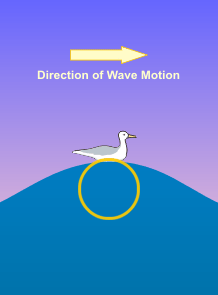 海啸其实可以看成是一种加强版的海浪,假如仔细观察那些漂浮在海面上的海鸟,你就会发现它们会跟随着海浪上下波动,但在水平方向上,它们却不会出现明显的位移,就像下图这样。