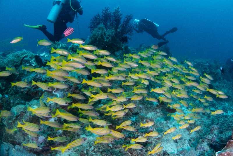 2020年12月22日在印度尼西亚四王群岛海域拍摄的鱼群。