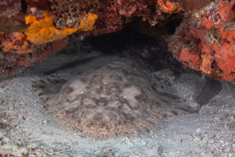 2020年12月21日在印度尼西亚四王群岛海域拍摄的一只藏在洞中的叶须鲨。