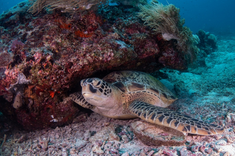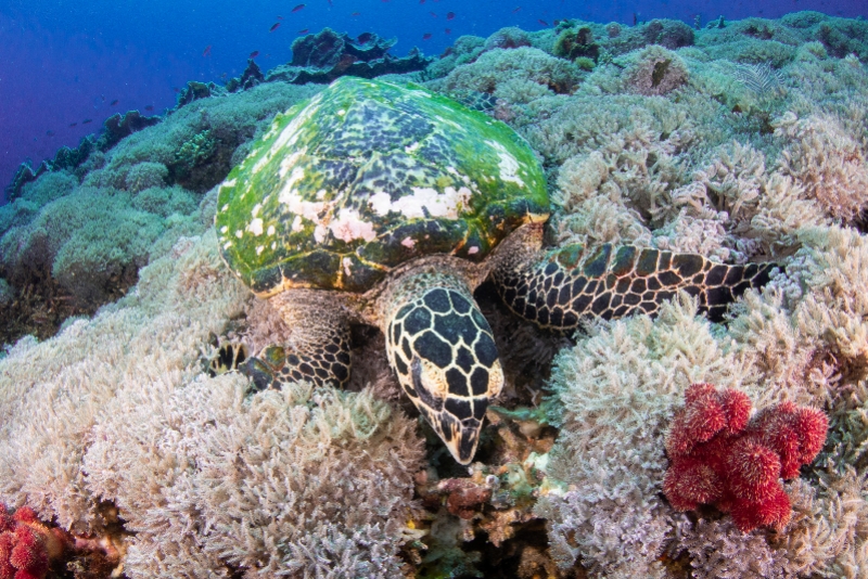 2020年12月21日在印度尼西亚四王群岛海域拍摄的一只海龟。