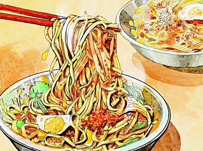 面馆里渐渐热闹起来,背着书包的学生、夹着公文包的上班族、摇着蒲扇的居民,根据自己的口味“自助式”浇上份量不等的辣椒油,随意坐在矮桌旁,剥一头大蒜,筷子“唰唰”一拌,埋头吃面的“呼噜”声此起彼伏。一碗面下肚,食客额头渗出汗珠,浑身通泰。