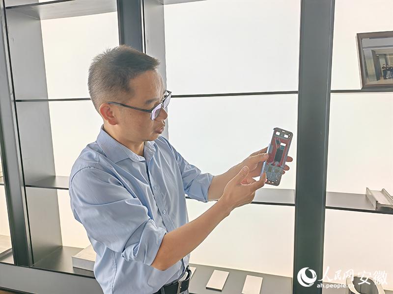 中色研达负责人介绍铝制手机框架。人民网 丁纪摄