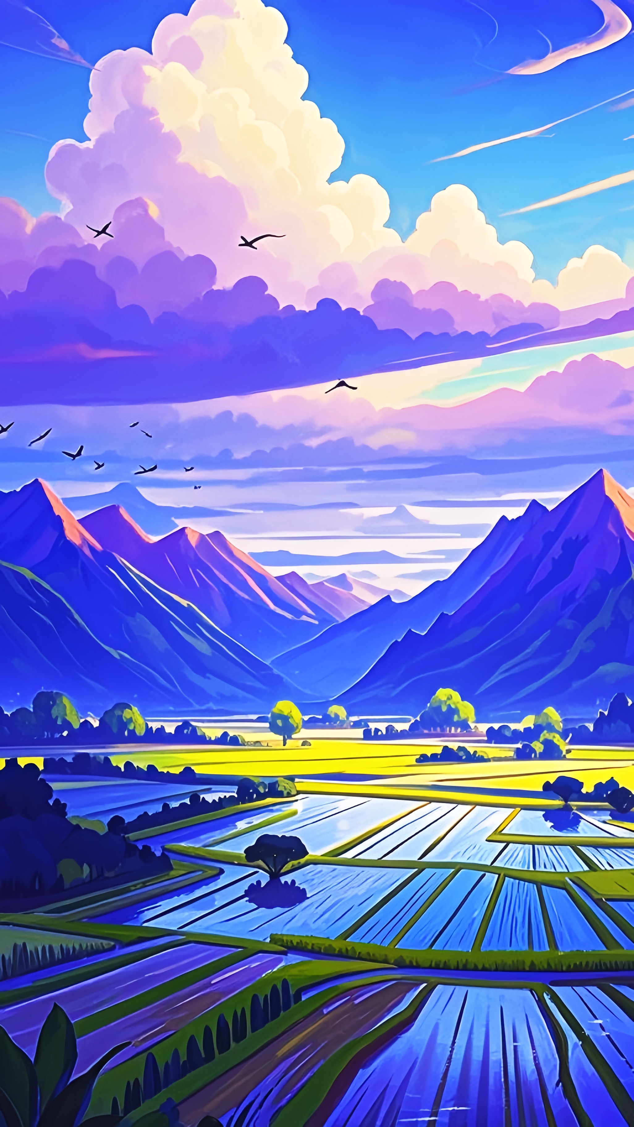 "山河 (Shānhé):" 山和河,代表广阔壮丽的自然景观。