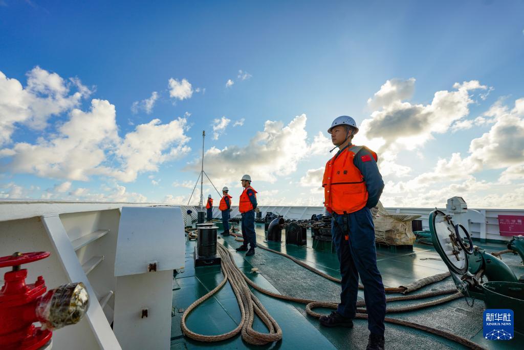 8月9日,在我国南海海域,中国海警华阳舰执法员在执勤。
