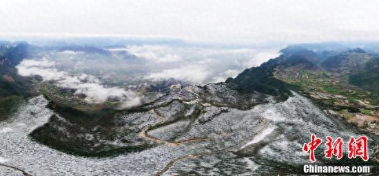 成县的山川“沐浴”在春雪之下。