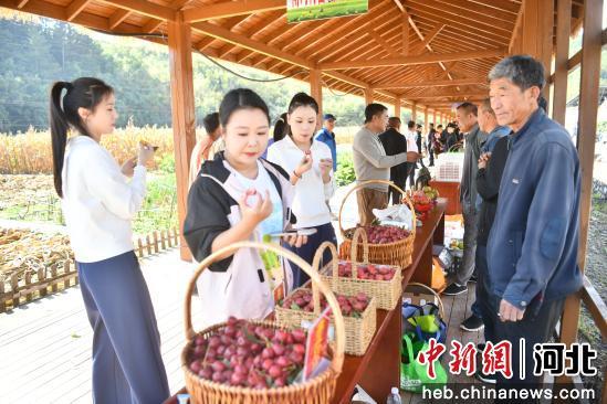 山谷集市中,展示台陈列着多种来自各村的农产品,为游客们带来了一场视觉与味觉的双重享受。