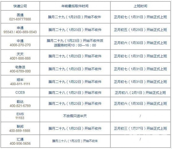 8、CCES最后揽件时间:腊月二十九,正月初八上班。