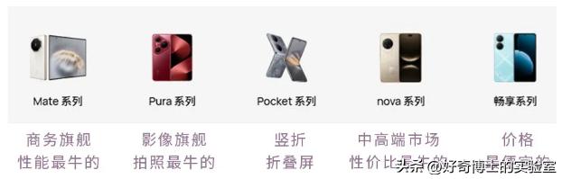 “Pura”是所属的系列代表“拍照贼厉害”的影像旗舰与之并列的有mate系列代表性能最强的商务旗舰pocket系列(折叠屏)等等