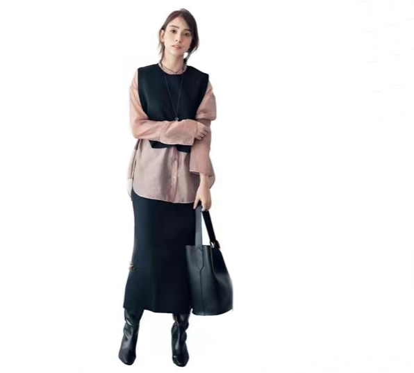 叠穿?好呀,这正是粉色透视衬衫的本能意愿。衔接一套黑马甲+筒裙,它信手拈来。无论配色,还是风格,都做到一个词:出彩。