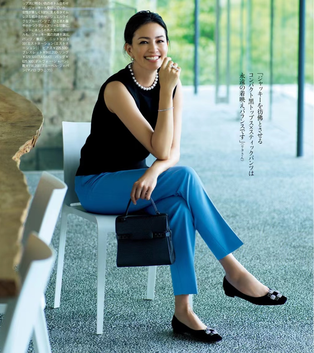 对了,蓝色手袋点缀,为休闲风加几分时尚。果然,精彩的力挽狂澜,还得是撞色呀。