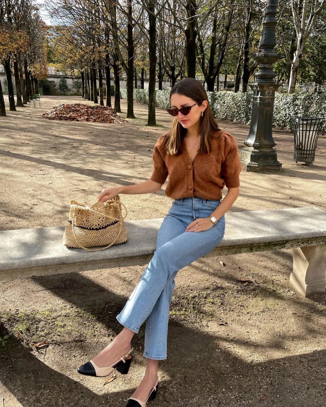 法式风格擅长把性感跟休闲结合,slingback跟牛仔裤就是这个组合的一对经典cp。但是要注意控制裤长,别让裤子挡住了鞋子后面的带子。▼