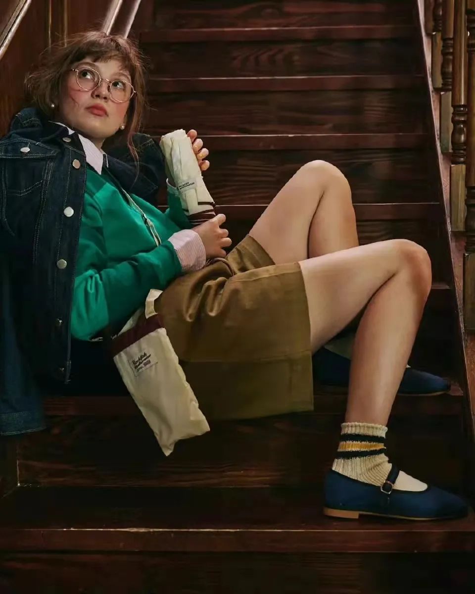 在搭配里加入白袜子,更突出它的减龄属性。轻松打造fudge风、小男孩风。▼