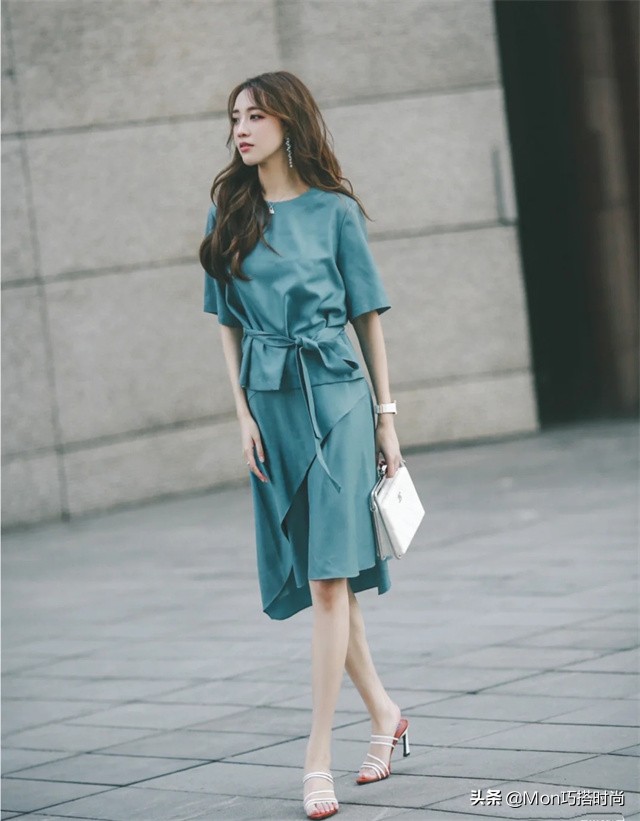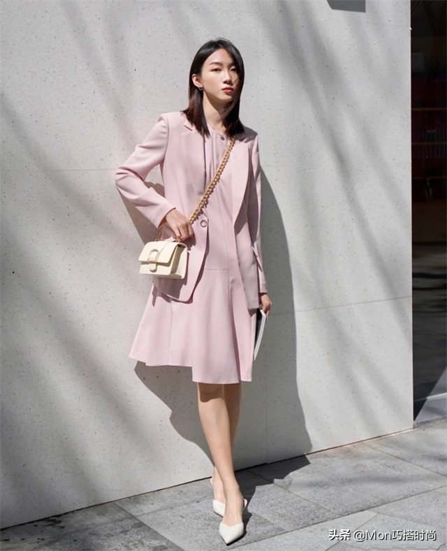 平底鞋显高就靠同色系和露脚踝;带跟鞋显高除了同色系,还可以安排高腰线或色彩呼应。