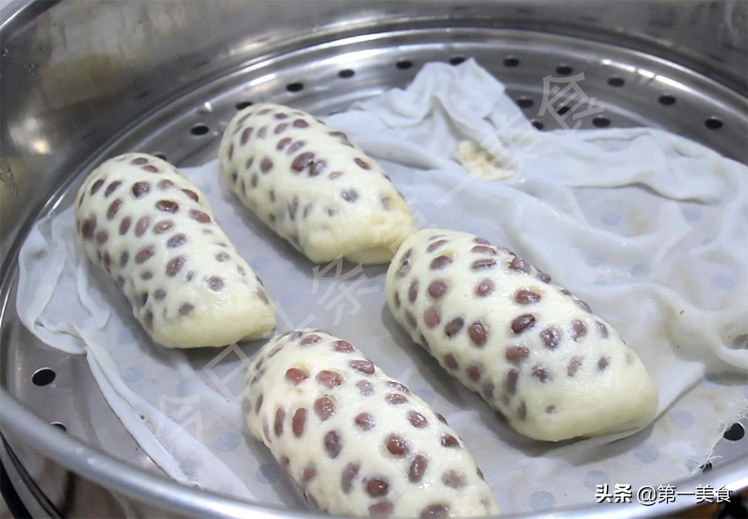 4.开始蒸制:水烧开以后,把发酵好的红豆卷放入蒸锅里面,盖上锅盖蒸15分钟。
