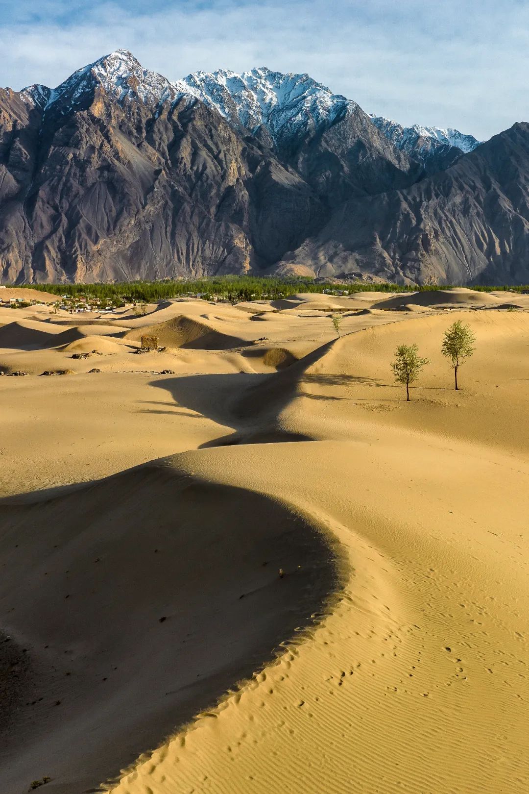 因为喀喇昆仑不仅深居内陆周边还被一群超级山脉包围因而整体降水较少,气候干旱植被稀疏,山地裸露,荒漠成群除了高度,似乎全无其他优势(喀喇昆仑山南侧,巴基斯坦斯卡都附近的卡帕纳高寒沙漠,即“Katpana Desert”,图片来源@视觉中国)▼