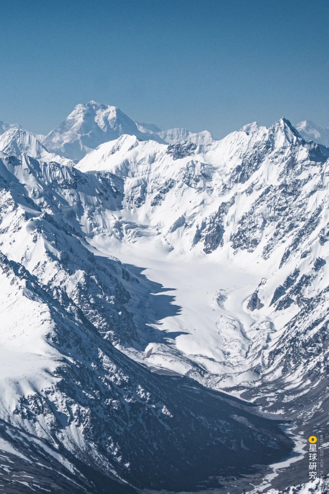 冰川不断凝结同时也在不断融化作为青藏高原最为庞大的冰川区之一它承担着周边水源的关键补给是周边生命的生息之源(万米高空俯瞰喀喇昆仑地区冰川,摄影师@杜骏豪)▼
