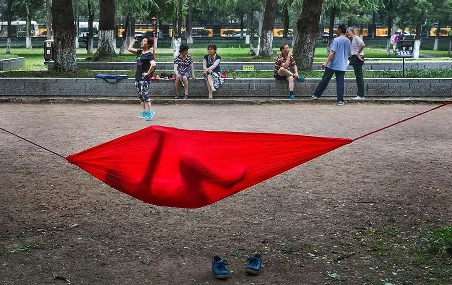 2017年6月28日,在吊床上玩耍的小姑娘。