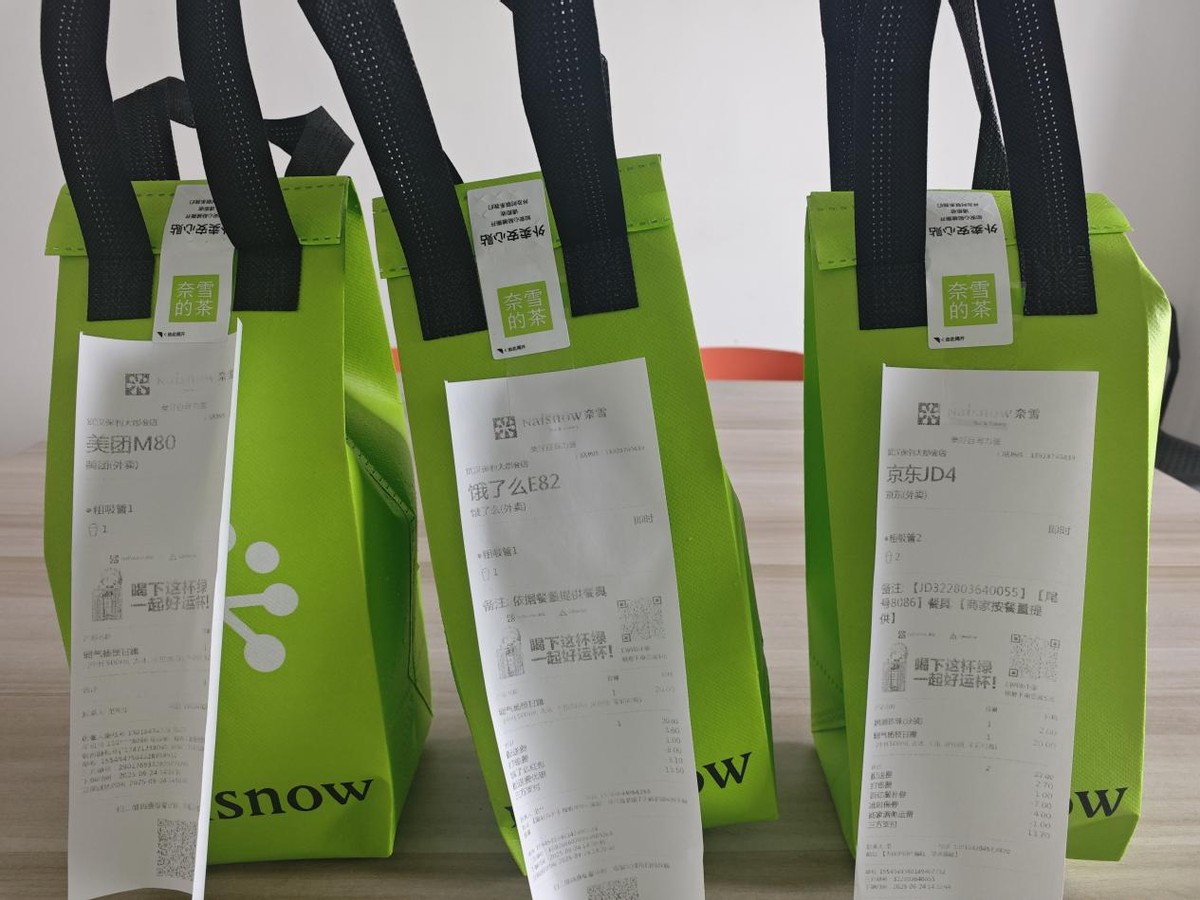 由于在中午饭点以后下的单,三家商品都在规定的时间内送达。美团的配送时间为14:26-14:57,用时31分钟,淘宝闪购配送时间为14:28-14:46,用时18分钟。京东的配送时间为14:30-15:14,用时44分钟。在买奶茶的外卖配送时长体验上,淘宝闪购第一、美团第二、京东第三。从奶茶送达的商品外包装来看,美团饮品放的比较规整,淘宝闪购和京东不知是打包问题还是骑手配送问题,两者瓶身能感觉明显倾斜,比较难水平放置于桌上。