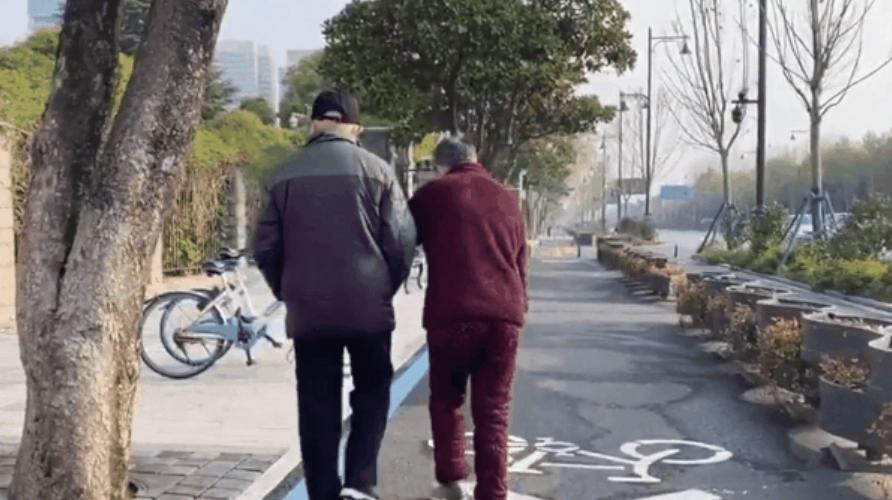 依旧手牵手在晨光中散步