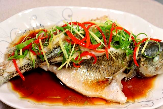 鲈鱼想蒸得“站得住”,记住“三丝”顺序:先铺葱白,鱼熟了才放葱绿+辣椒丝,最后淋热油。