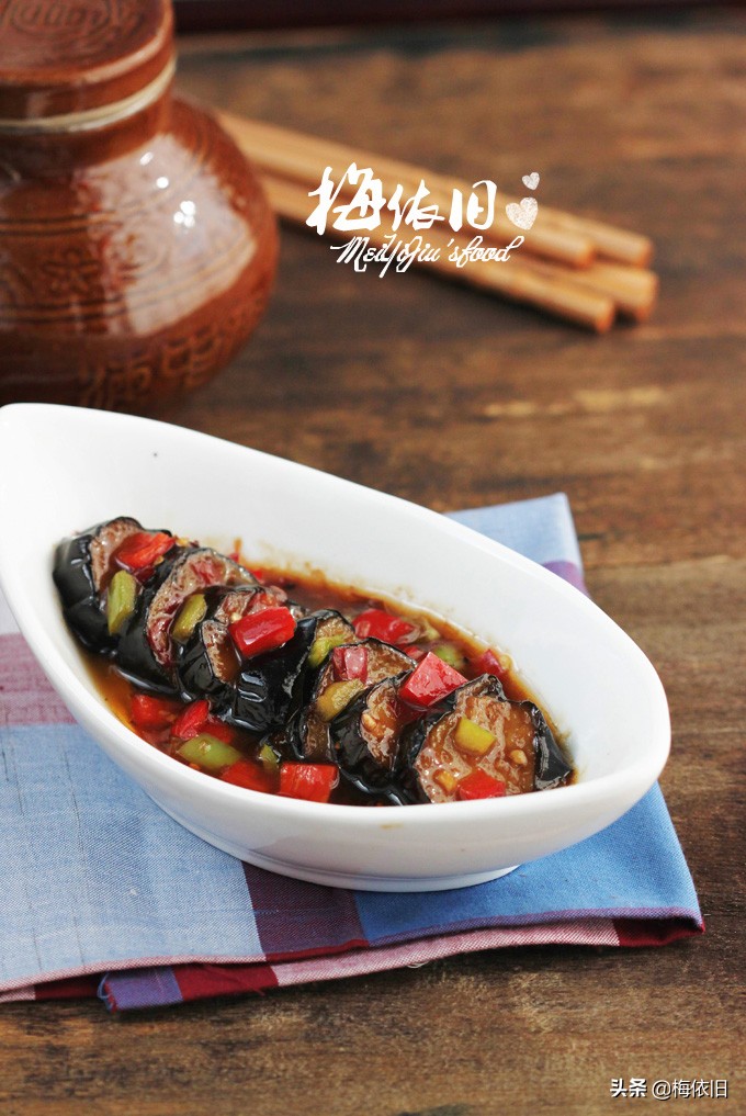 做法:1、首先,准备茄子两根去蒂以后,切成5厘米左右的段,每段直切成两半,每半片斜切成3片,放少许盐拌匀,茄子腌制0分钟左右,挤出水份
