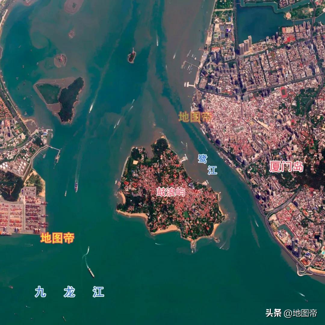 鼓浪屿地处九龙江出海口,位于厦门岛西南侧600米处,隔着鹭江,面积约1.88平方千米。鼓浪屿岛上有一块洞穴中的礁石,每当涨潮水涌,浪击礁石,声似擂鼓,人称“鼓浪石”,鼓浪屿因此得名。