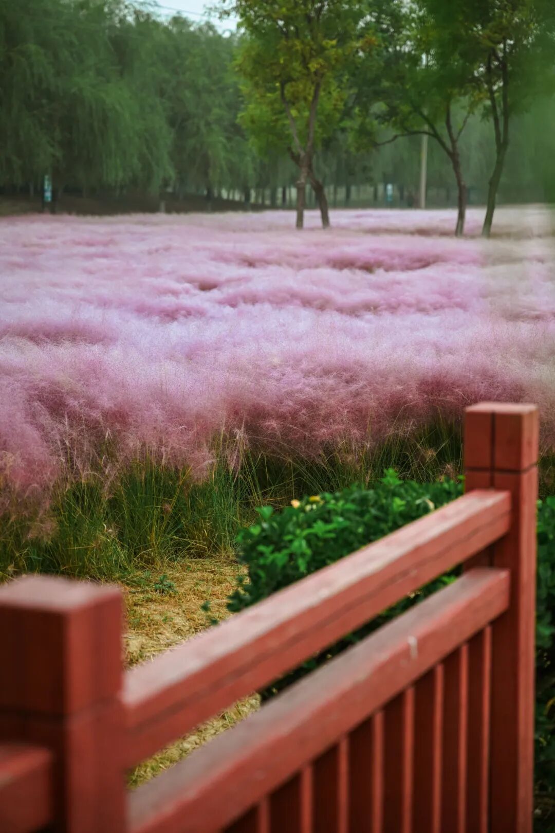 PART.05郊野公园一片会发光的原野在眼前徐徐展开——那是粉黛乱子草织就的梦幻世界。它们像被夕阳揉碎的晚霞,又似大地上浮起的半透明薄雾,以柔和的粉色滤镜包裹四野,随手一拍都是绝美大片。