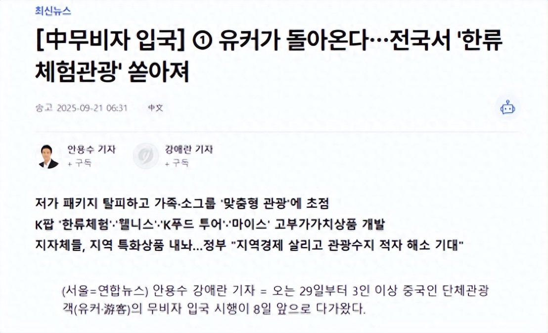 据韩联社报道,一直以来,中国入境游客在旅游收入中占有最大份额。文化体育观光部的调查显示,新冠疫情暴发前的2019年,中国入境游客达到602万人,总支出约为98亿美元,占当时所有外国游客总支出的大约44%,是核心消费群体。
