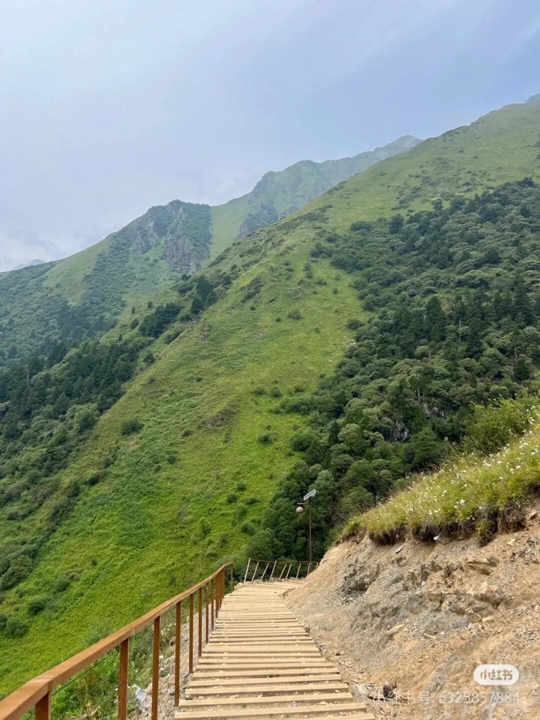 起点海拔3000m,山顶海拔4000m左右,徒步单程5km。整个徒步线路基本都是台阶,用木板分隔拦截,路况还算良好。