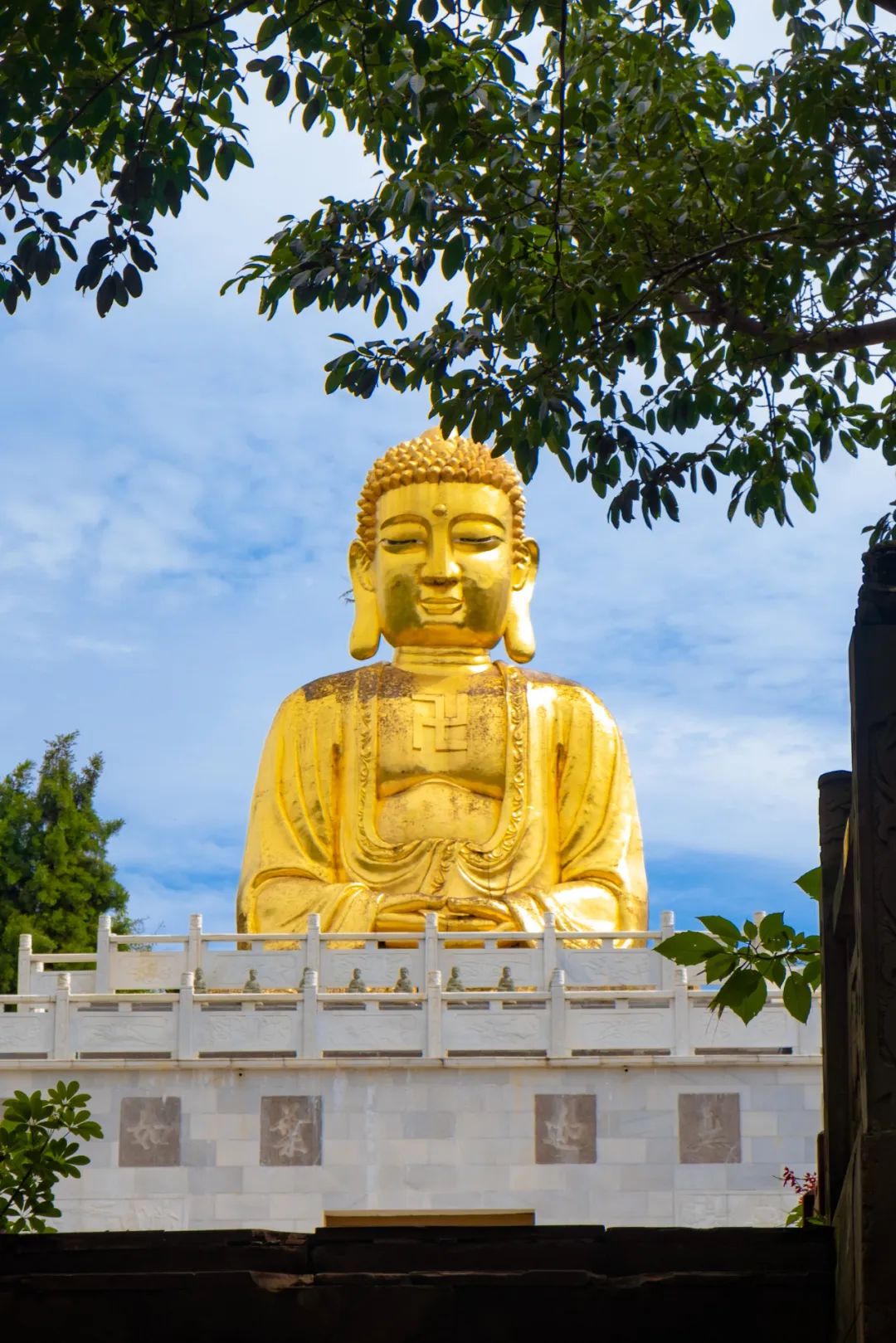 穿过层层殿堂,跨过台阶,映入眼帘的,是一尊将近20米高的露天大佛。