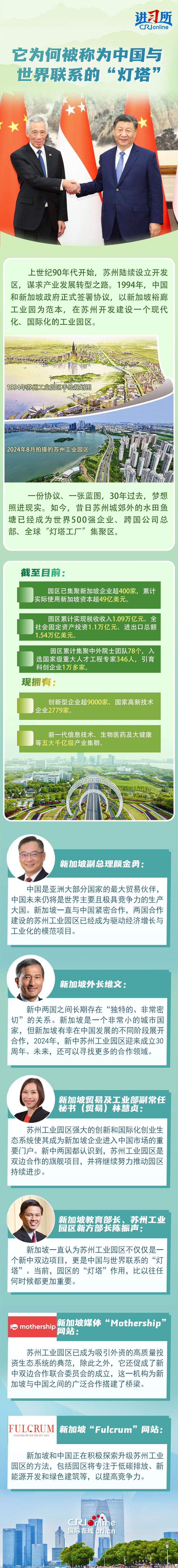 此前一天,李显龙在庆祝中新苏州工业园区(SIP)成立30周年的活动上表示,“在一个充满不确定性和焦虑的时代,苏州工业园区将照明合作与希望之路。”