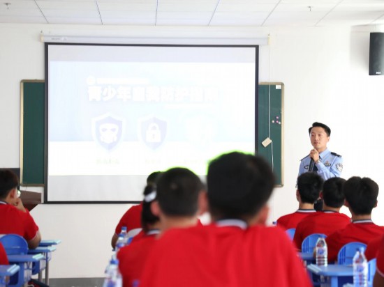 签约仪式结束后,省孤儿学校师生依次参与了内容丰富、形式多样的法治教育环节。在青少年毒品预防教育展厅,民警向学生们详细介绍毒品的种类、特征及危害,以及新型毒品的隐蔽性、迷惑性和伪装性等特点。在防校园霸凌、反电诈专题讲座上,授课民警结合真实案例分析校园霸凌和电信诈骗的常见形式及防范措施,增强学生自我防范意识。