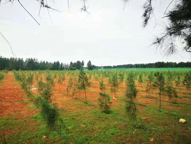 防护林一期于2018年6月动工建设,2019年9月通过竣工验收,工程总投资约5.45亿元,累计完成约1800亩苗木种植。在喷灌、滴灌等措施的加持下,苗木成活率超95%。经过两年多的养护,外侧木麻黄的高度已从初植的1.2米生长到平均6米。