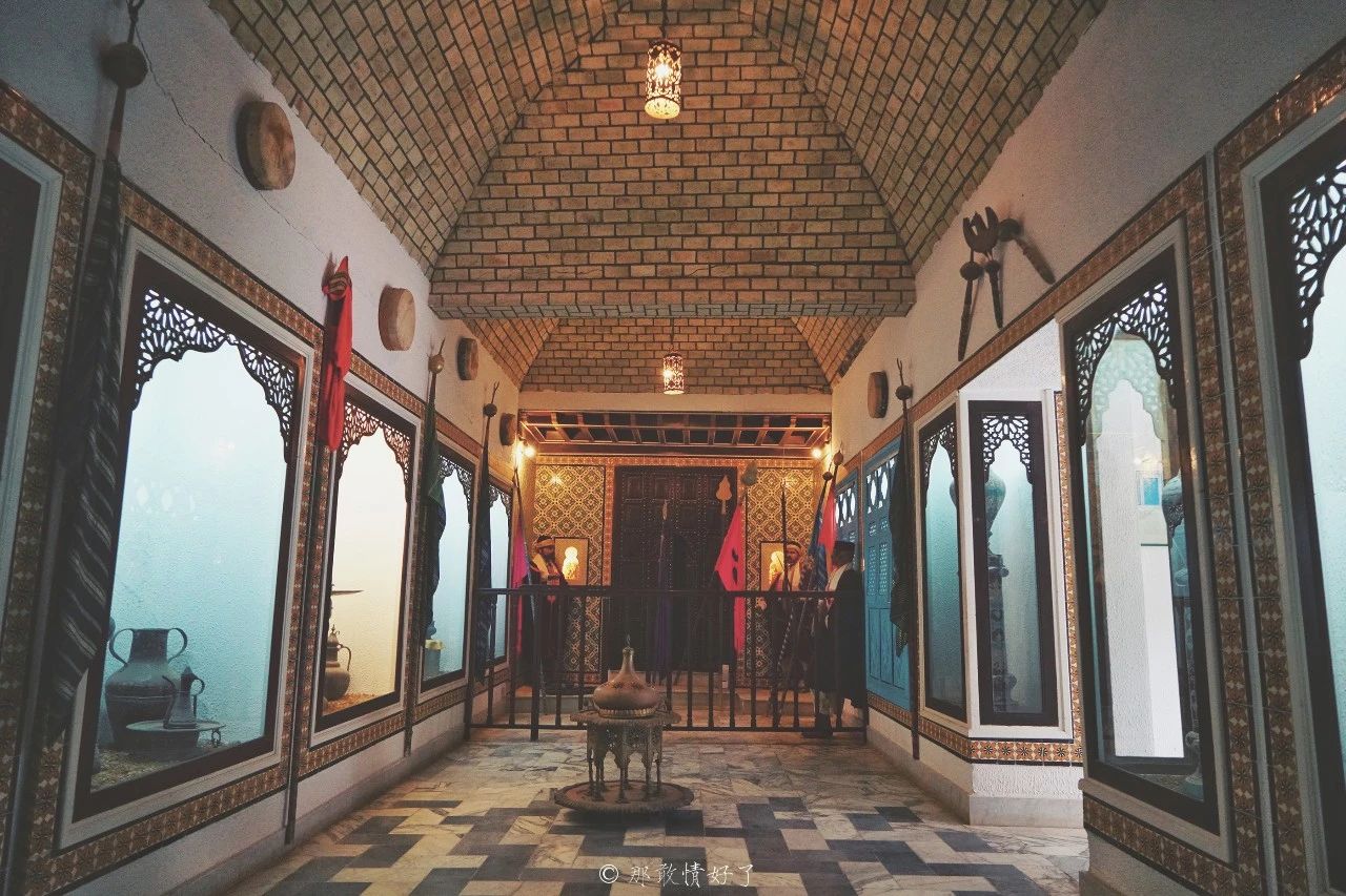 展厅部分有几层,分别展示了突尼斯的人文风情,民风民俗,生活习惯和生活场景,那些不谋而合似曾相识的生产生活用具,和我国古代的极为类似。同时还展出了珍贵的历史文献和照片,那些规则的墙面纹饰和色彩,总是能让我心潮澎湃,证明我身处异乡。