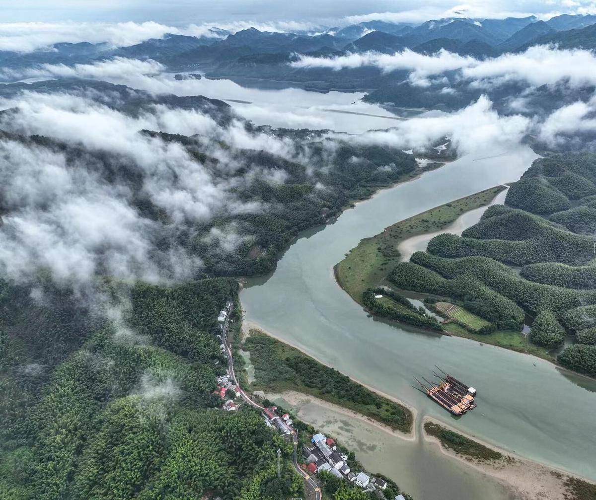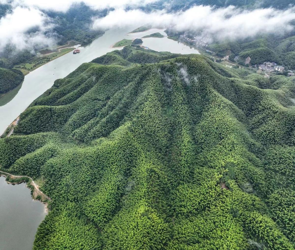 鄂南崇阳县与赤壁市交界处的陆水,两岸山清水秀,竹海松涛。从崇阳县城乘船沿隽水河穿行洪下,映入眼帘的是两岸连绵十余公里的楠竹海洋,被人称“十里画廊”。6月16日,一场雨后,清新翠竹衬映出別样风景!(湖北日报全媒记者 杨发维 摄)