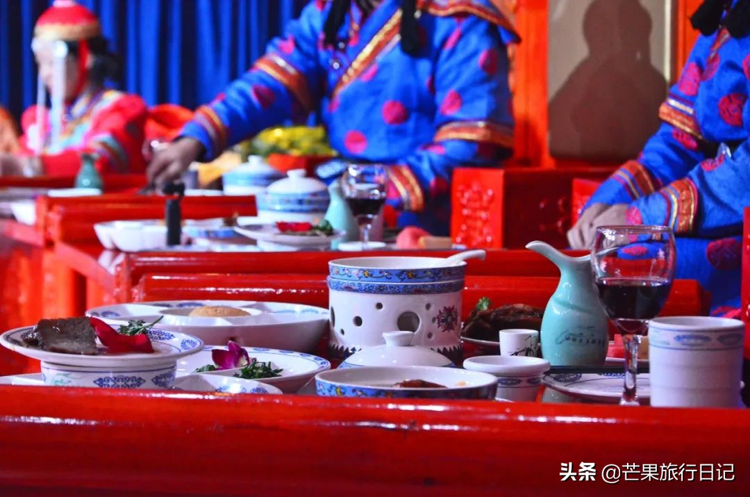 图为诈马宴,是蒙古人的宫廷盛宴,王公大臣需盛装出席。诈马宴本已失传,后来根据史籍记载重新恢复了,如今也是那达慕大会的一个观赏项目,游客可参观也可参与。