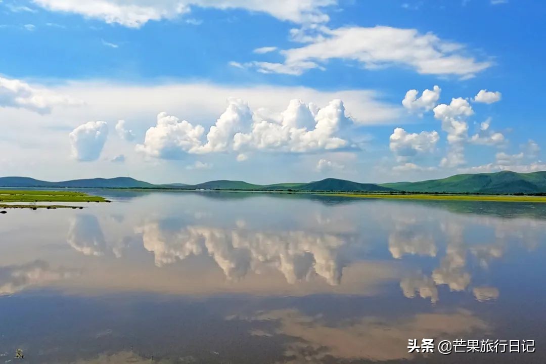 图为呼伦贝尔大草原,是世界四大草原之一,河流纵横交错,湖泊星罗密布,一到夏天,草原碧绿,野花盛开,牛羊成群,毡房点点。躺在草地上,闻着青草的芬芳,微风吹拂着脸庞,时间仿佛静止了,可以一直躺到地老天荒。