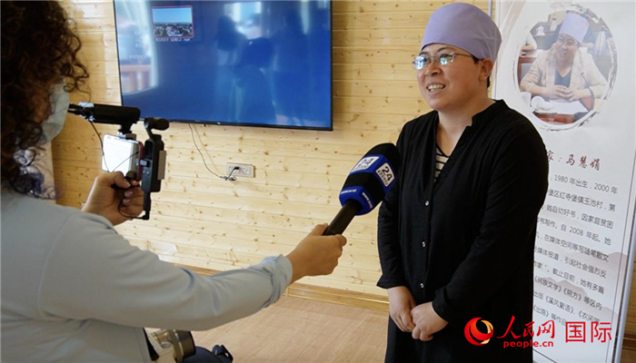 马慧娟接受外国记者的采访。人民网记者 何蒨摄