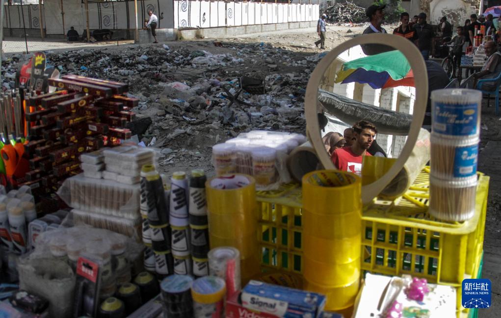 这是10月15日在加沙地带北部杰巴利耶地区拍摄的一处集市。
