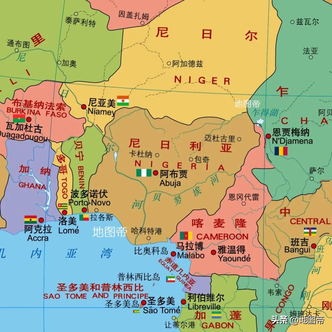 尼日利亚位于西非东南部、地处几内亚湾东北岸,海岸线长约800千米,陆地邻国按顺时针方向依次是:贝宁、尼日尔、乍得、喀麦隆。尼日利亚面积约92.38万平方千米,居非洲第14位,放在我国省级行政区中可排第四位,居几内亚湾沿岸国家之首。