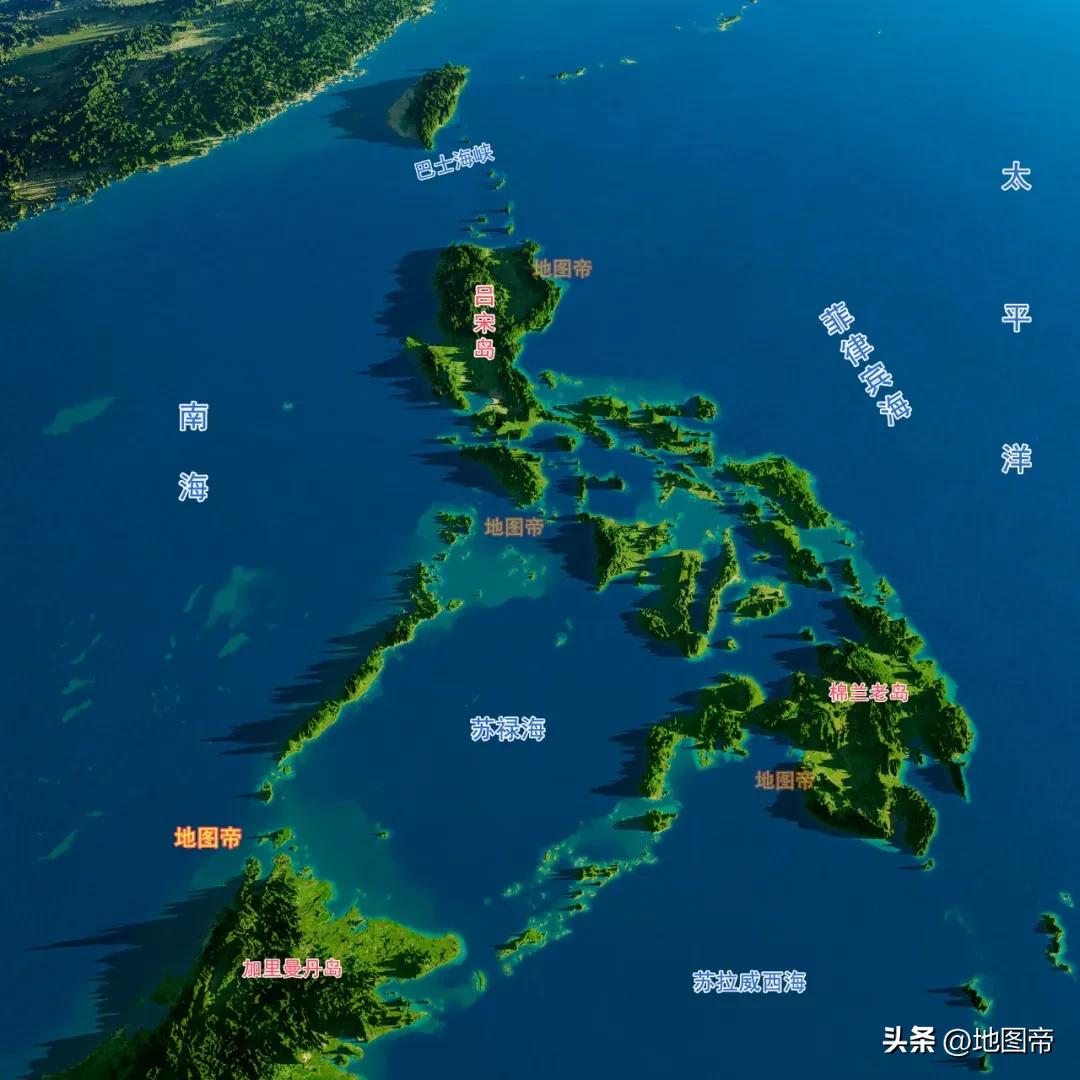 菲律宾位于中国东南方向的西太平洋上,面积约29.97万平方千米,放在我国省级行政区中可排第九位。菲律宾北隔巴士海峡与我国台湾省遥遥相望,南和西南隔苏拉威西海、巴拉巴克海峡与印度尼西亚、马来西亚相望,西濒南海,东临太平洋。