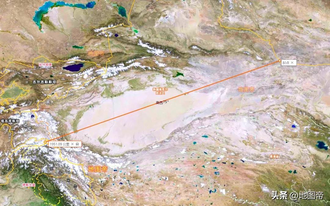 新疆从东部的哈密市,到西部克孜勒苏柯尔克孜自治州,长度约1950千米。