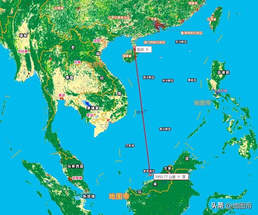 海南从北部海口附近的琼州海峡,到南部曾母暗沙海域,长度超1800千米。