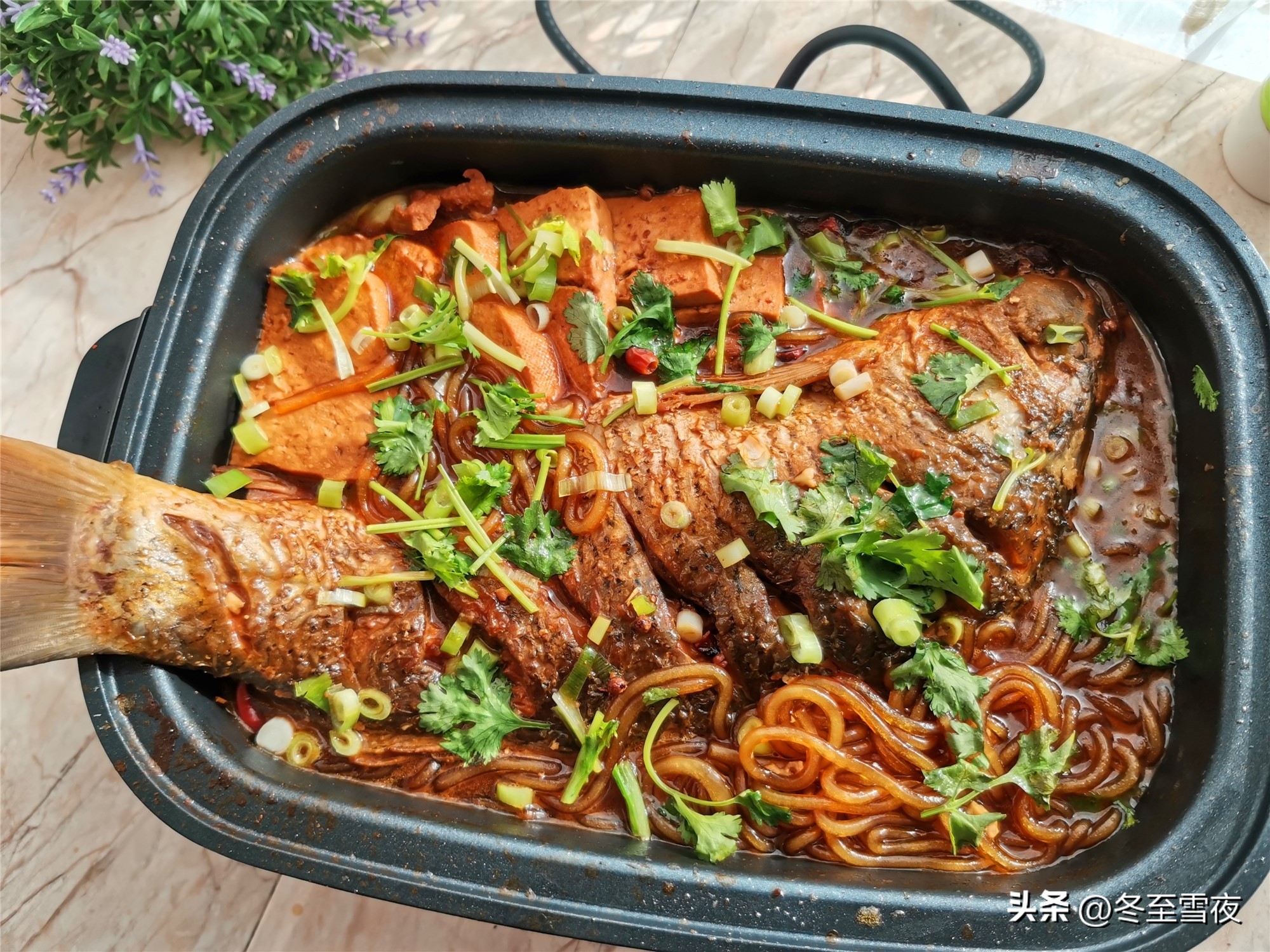 8.到时间后,关火,撒上葱花和香菜段即可,一锅色香味俱全的家常得莫利炖活鱼就做好了。