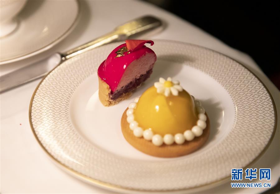 这是9月5日在英国伦敦市中心知名的奥斯卡·王尔德茶餐厅(酒廊)拍摄的英式下午茶的甜点——玫瑰树莓荔枝挞和杏子香草牛奶冻。 9月13日,中国将迎来传统佳节——中秋节。月饼作为中秋节的传统糕点,久负盛名,备受人们喜爱。那么世界上的其他地区是否也有自己独特的传统糕点,让人食之难忘呢?答案是肯定的。 有一首英国民谣唱道:“当时钟敲响四下时,世上的一切为茶而停。”英国人喜欢下午茶,标准的英式下午茶来自英国贵族的传统生活:他们早餐吃得丰盛,午餐相对简单,晚餐大约在八点至八点半开始,傍晚4、5点钟经常会饥肠辘辘,于是有了下午茶。 一套英式下午茶一般由茶、三明治、司康饼、蛋糕与甜点组成。司康饼是英式下午茶的精髓,也是必备的茶点。它新鲜烤出,热乎乎地端上来,趁热切开,配上厚厚的浓缩奶油和新鲜果酱,咬上一口,唇齿间散发出满满的幸福感。 作为英国人典雅生活方式的象征之一,英式下午茶已发展成一个精致的仪式,很多下午茶餐厅都对着装和礼仪有要求。 新华社记者韩岩摄