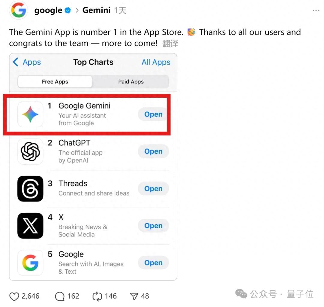 随着谷歌不断推出新的Gemini系列,局面终于开始反转。一方面,技术上谷歌逐步补齐短板。Gemini 1.5将上下文长度直接拉到百万量级,Gemini 2.0更是被外界评价为“全面对标甚至部分超越GPT-4”,Gemini 2.5 Pro在代码、推理等能力上更是斩获一众好评。另一方面,更重要的或许还在于谷歌打出了生态牌。Gemini不再是一个孤立的模型,而是被嵌入搜索、Chrome浏览器、YouTube、Gmail、Docs等核心应用,覆盖全球数十亿用户。结果就是,从一度“被迫补课”,到如今App Store排行榜反超ChatGPT,谷歌迎来了真正意义上的“逆袭时刻”。大部分网友的反应be like: