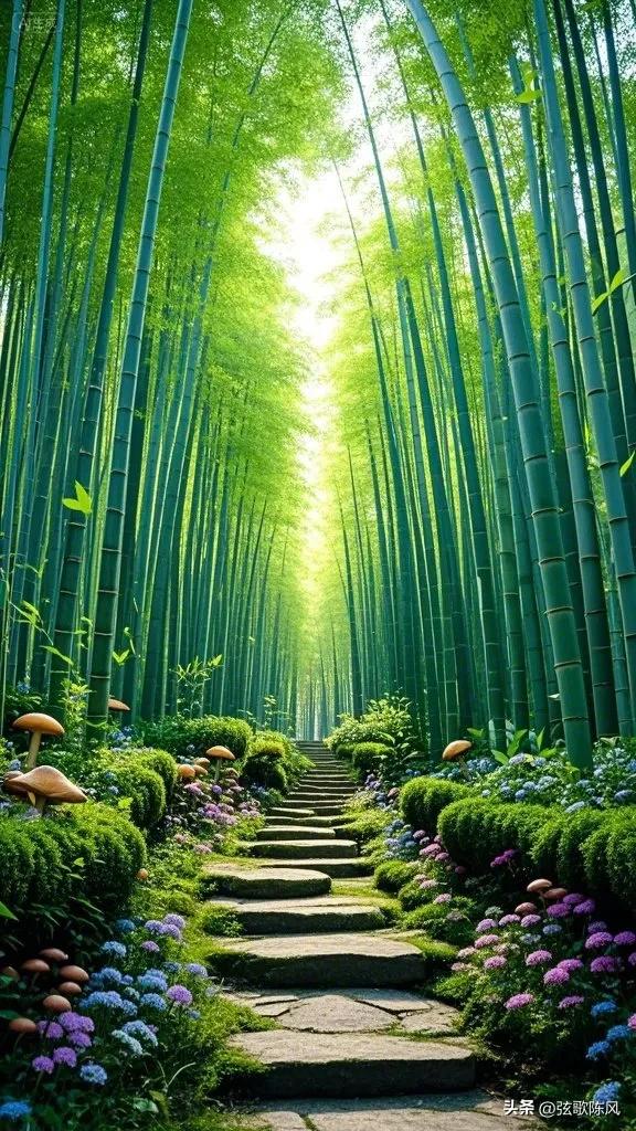 这句诗“竹海之美一一晨雾轻笼碧树间,山家隐现似桃源”描绘了一幅宁静、神秘而又充满诗意的画面,极具感染力。我们可以从以下几个方面来理解和欣赏它的美: